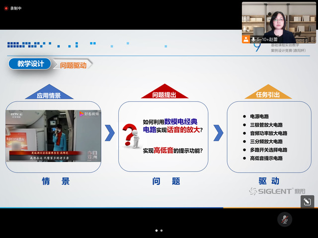 5月28日至29日,第九届“鼎阳杯”全国高校电工电子基础课程实验教学案例设计竞赛全国总决赛在线上举行。总决赛分为实验教学案例设计竞赛和实验授课能力竞赛两个环节,通过两天的激烈角逐,我院教师赵蕾、赵艳启和熊天漪团队作品为基于进阶式问题驱动的音频功放电路分析与实践荣获全国一等奖。此外,王晓彧、李从宏的参赛作品“非接触式测温系统设计”和倪瑛、陆驹的参赛作品“基础电路波形发生器”荣获华东赛区二等奖。参赛教师在竞赛中展示了先进的实验教学理念和教学方法,有效融入课程思政,体现了电子信息工程技术专业教师扎实的教学能力,获得了评委专家的肯定。