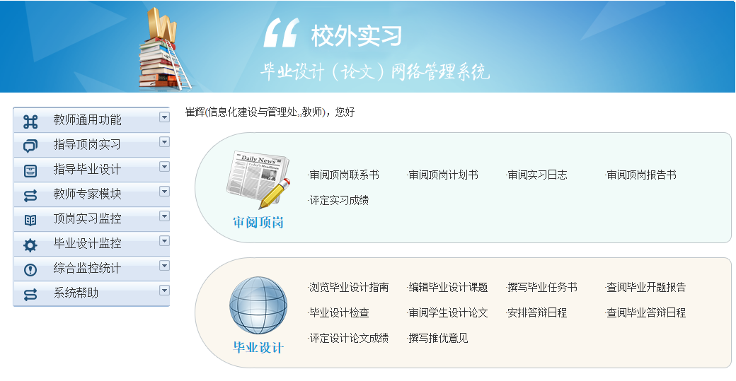 用自己的账号登陆统一认证平台http://info.niit.edu.cn 然后找到顶岗实习的图标点击进去,处理自己相关的实习与毕业论文。