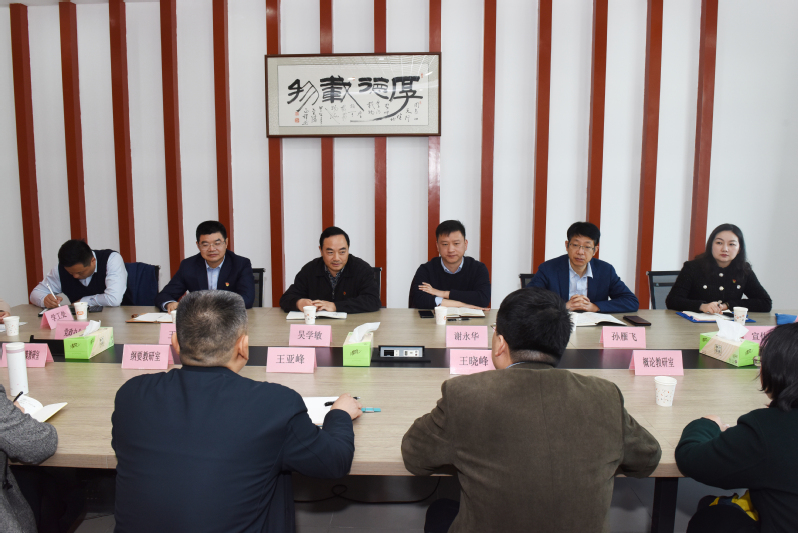 2022年3月8日上午,校党委书记吴学敏、校长谢永华、党委副书记王伟、副校长孙雁飞率党委办公室、校长办公室、宣传部、人事处、学工处、科技处、信息化处等相关部门负责同志到马克思主义学院开展马院建设专题调研工作。马院班子成员及各教研室主任参加了调研会。调研会由学校党委副书记王伟主持。