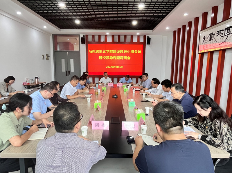 为推进马克思主义学院建设,更好地发挥思想政治理论课主渠道作用,9月16日上午,我校马克思主义学院建设领导小组会议暨校领导专题调研会在求真楼514会议室召开。校党委书记吴学敏,党委副书记、校长谢永华,副校长潘旭海和领导小组成员单位负责人出席会议,马克思主义学院领导班子成员、教研室主任及部分校领导联系的思政课教师参加会议。会议由党委副书记王伟主持。