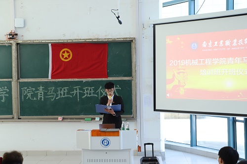 3月7日中午,南京工业职业技术学院机械工程学院在乐群楼J1102室举行2019年青年马克思主义者培训班(简称青马班)开班仪式。出席嘉宾包括机械工程学院党总支书记徐坚,团总支书记、辅导员,开班仪式由辅导员曹金玉主持。