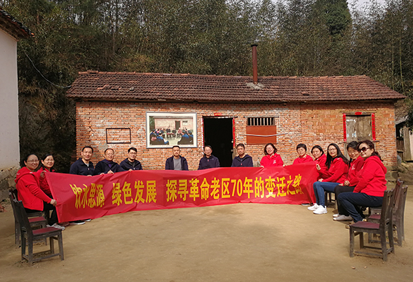 为深入学习贯彻党的十九大精神、习近平新时代中国特色社会主义思想和全国高校思想政治工作会议精神,坚定理想信念,牢记初心使命,马克思主义学院直属党支部书记邓利民、院长王亚峰带领党员教职工一行于3月29日赴安徽省六安市金寨县大湾村开展“饮水思源 绿色发展 探寻革命老区70年的变迁之路”主题党日活动。