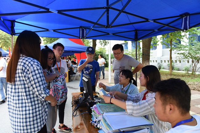 校园里,一条条大红色的迎新横幅洋溢着青春的个性与热情,一幅幅色彩斑斓的迎新展板展现着创意与温情,新生们纯真的笑容与校园里鲜艳的花朵一同绽放。相关部门工作人员、各学院党政负责人、辅导员、班主任全员上阵,现场指挥、协调迎新工作;工作人员热情接待,认真核对数据、耐心细致解答学生家长的咨询;志愿者们穿梭于新生群中,有忙必帮;“绿色通道”办理相关手续确保贫困生顺利入学,带给贫困学子最直接的帮扶。快速便捷的报到流程、贴心细致的安排,使新生学子们处处感受到家一般的温情。