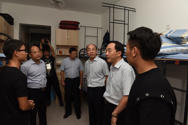 迎新期间,校党委书记吴学敏,纪委书记于林惠,党委委员、副校长霍雄飞、朱建国等校领导相继来到迎新现场,看望迎新工作人员、志愿者和报到的新生,了解迎新工作开展情况,指导迎新期间开展的各类活动。吴书记在迎新现场遇到一名来自四川的机械工程学院大一新生,交谈中了解到这名同学家庭较为困难,独自一人来到学校报到,吴书记向他赠送了生活用品礼包,代表学校表达对他的关怀,鼓励他好好学习,不要有后顾之忧,要充分利用学校的各种教育教学资源,在未来的求学路上努力进取,报效祖国。随后,校领导们走访了焕然一新的学生公寓,与新生和家长亲切交谈,深入了解新生的基本情况,让新生感觉到家一般的温暖。