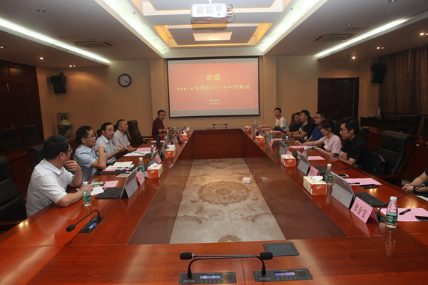 在RTC项目推进会上,吴书记首先代表学校对Carrie总监一行莅临指导表示热烈欢迎,感谢苹果公司对双方合作项目的长期关心和大力支持。随后,吴书记向客人简要介绍了学校与苹果合作项目的进展及学校学生的创新创业能力情况,希望苹果公司能够持续把企业优质资源、先进技术带到学校。Carrie总监十分赞同学校激励学生科技创新的做法,表示未来将依托RTC平台,让苹果公司的冬令营、苹果移动应用创新大赛在南工院落地生根。计算机与软件学院胡光永院长具体介绍了现阶段RTC项目建设的阶段性成效,表示将抓住机会,把双方洽谈的内容尽快落实,加快推进苹果实训机房、创客空间及创新俱乐部的建设与运行,把苹果公司的课程资源、创新要素和理念引入课堂。