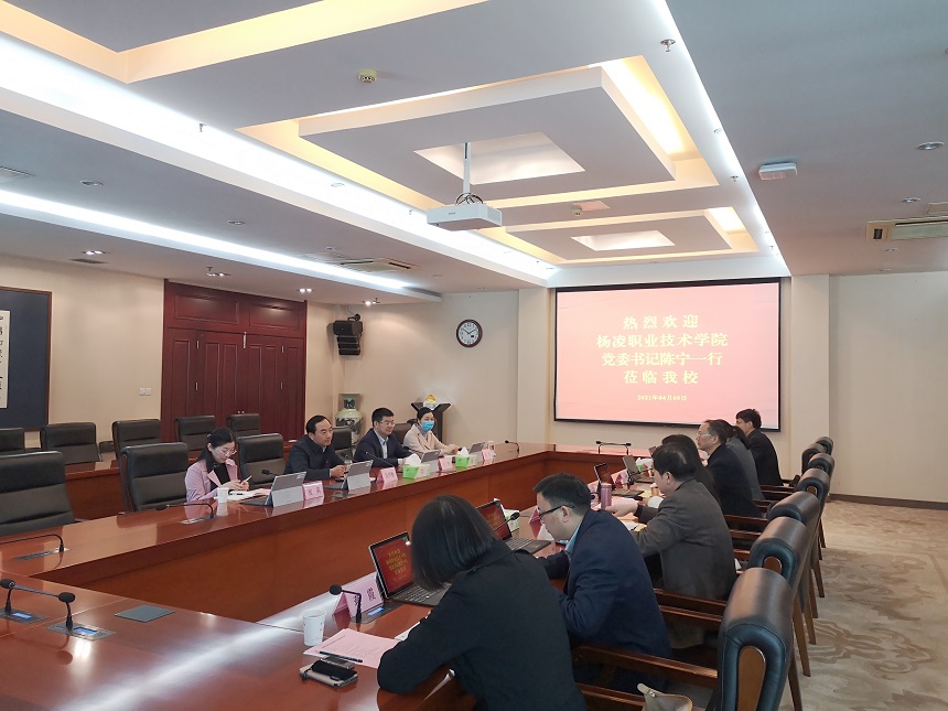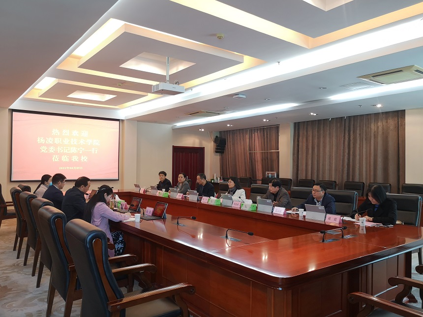 4月9日上午,杨凌职业技术学院党委书记陈宁一行来我校考察调研。党委书记吴学敏、党委副书记王伟,以及人事处、教务处等部门负责同志在行政楼辅楼一楼会议室接待了来宾。