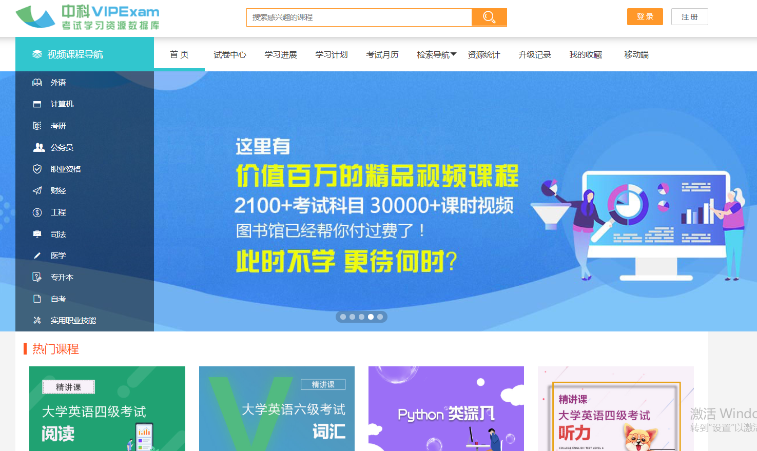中科VIPExam考试学习资源数据库”是一套集日常学习、复习备考、在线无纸化考试等功能于一体的教育资源数据库。现已涵盖外语、计算机、财经、职业资格、工程、公务员、考研等12大专辑1400余类考试科目,试卷量超过11.5万套。