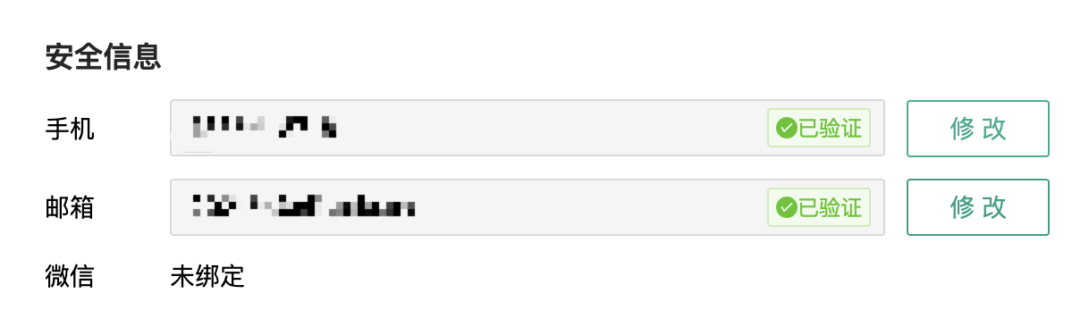 如需修改验证手机和邮箱,可重新在个人信息页面单击“修改”按钮,之后的操作流程与添加手机号/邮箱操作相同。